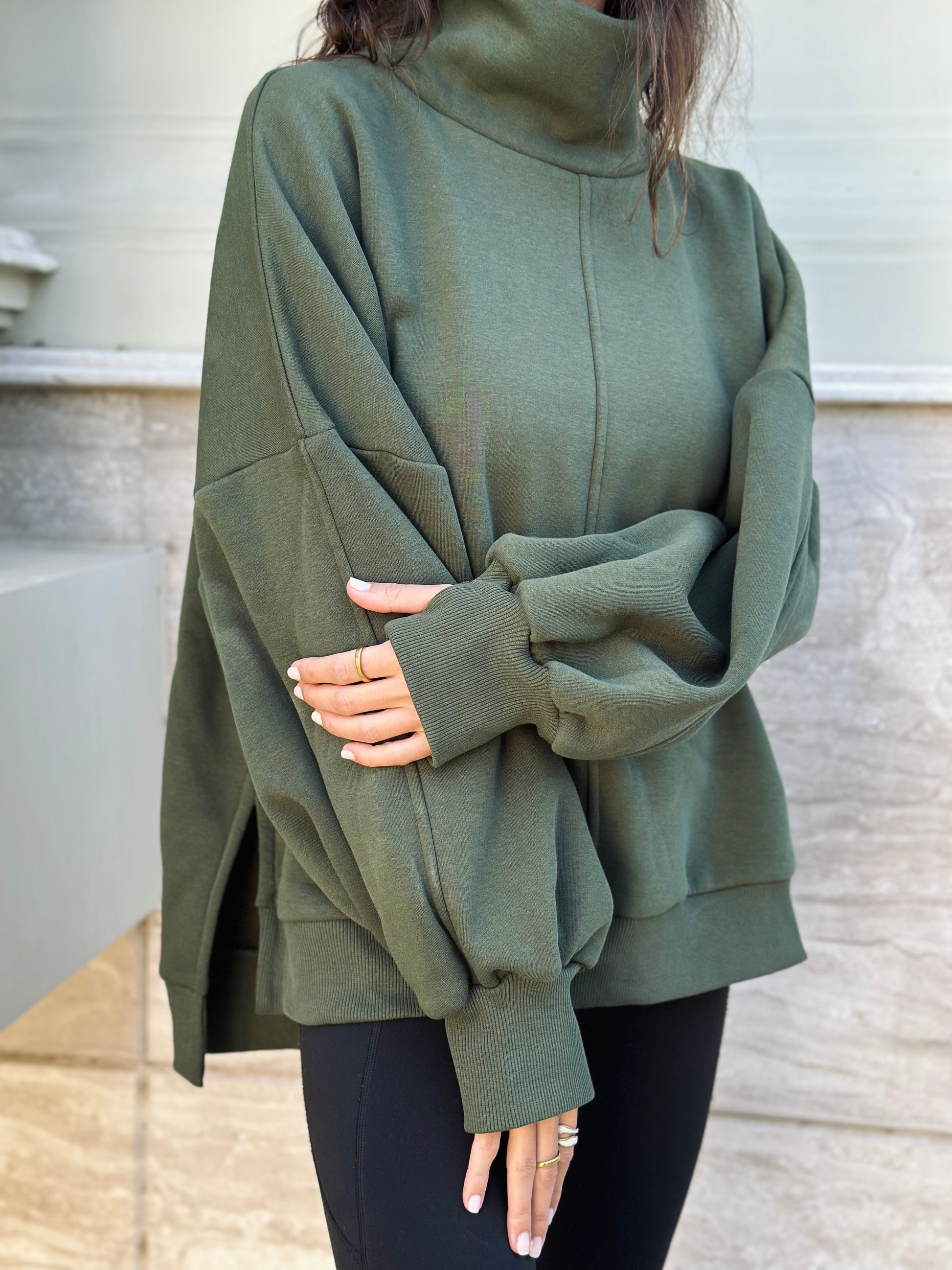 A modern upgrade to your everyday sweatshirt. Designed with a clean high neckline, drop shoulders, and a relaxed fit, this piece delivers comfort and warmth. The fabric is soft yet holds its shape — ideal for layering or wearing solo.